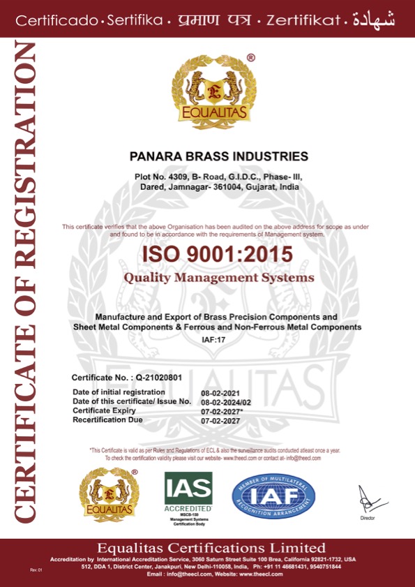Each component produced at Panara Brass Industries follows stringent quality procedures and vigorous quality checking at all stages of manufacturing cycle to ensure that near.